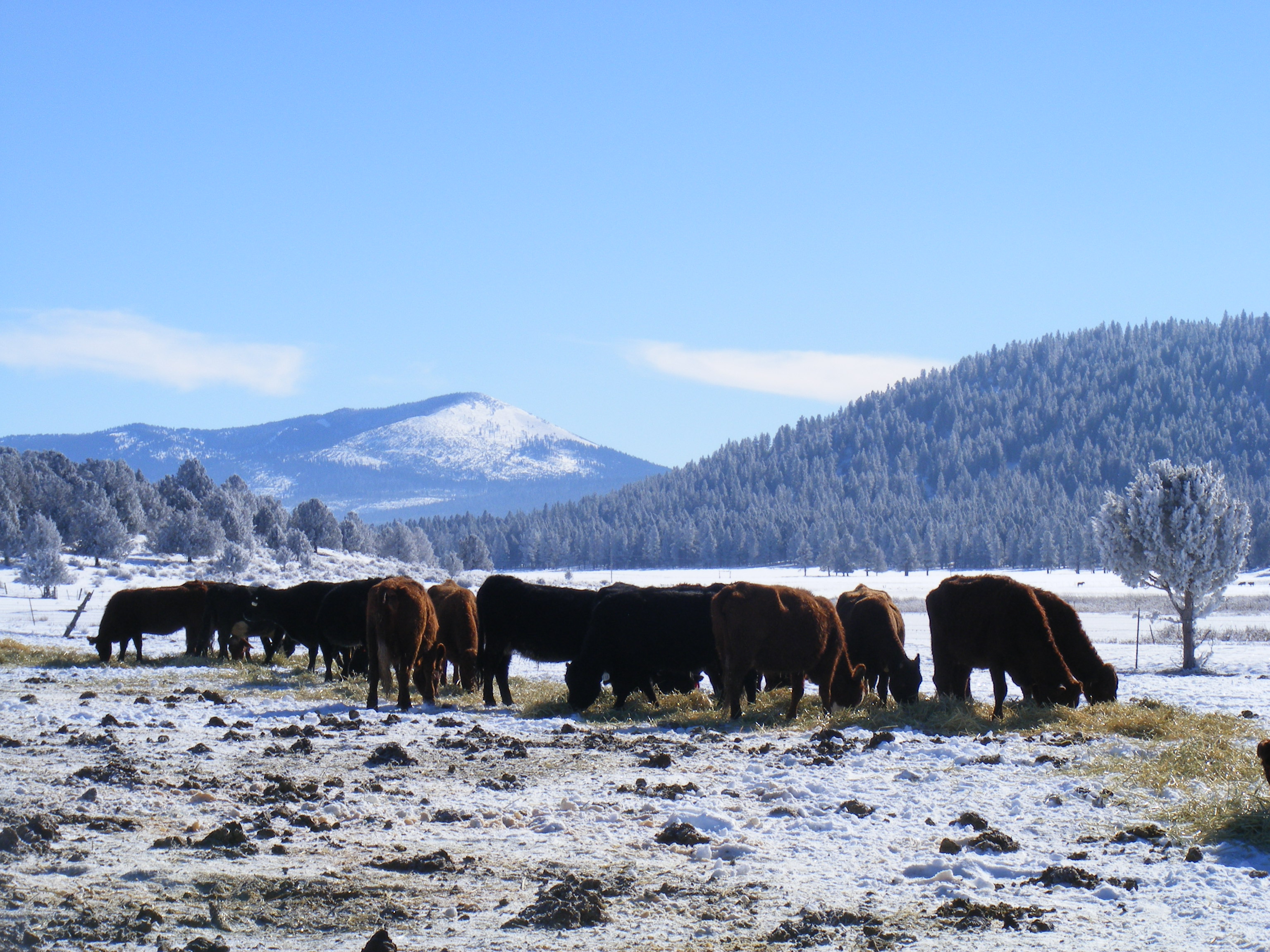 Scenic wintertime cows