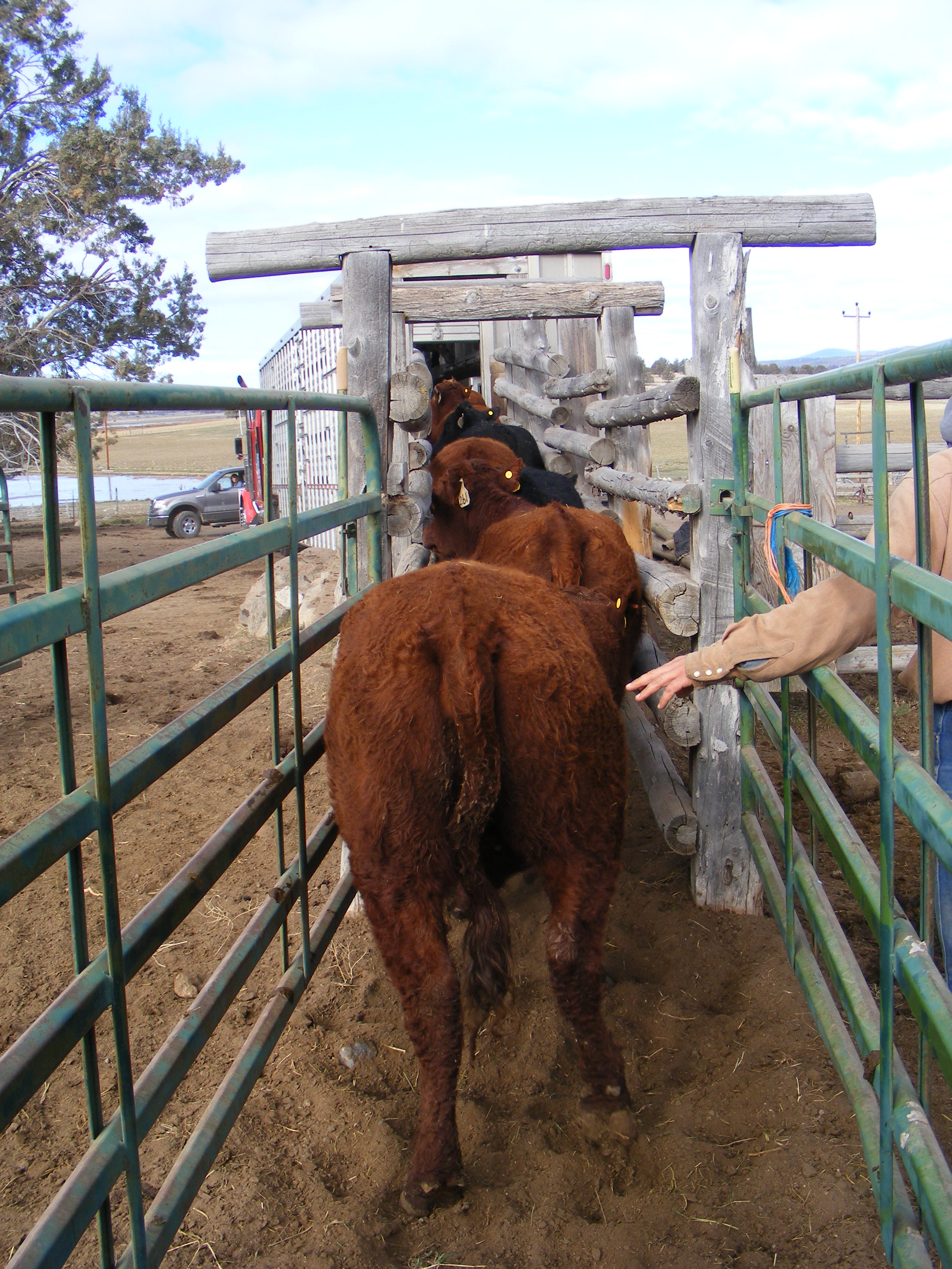Loading cows onto truck
